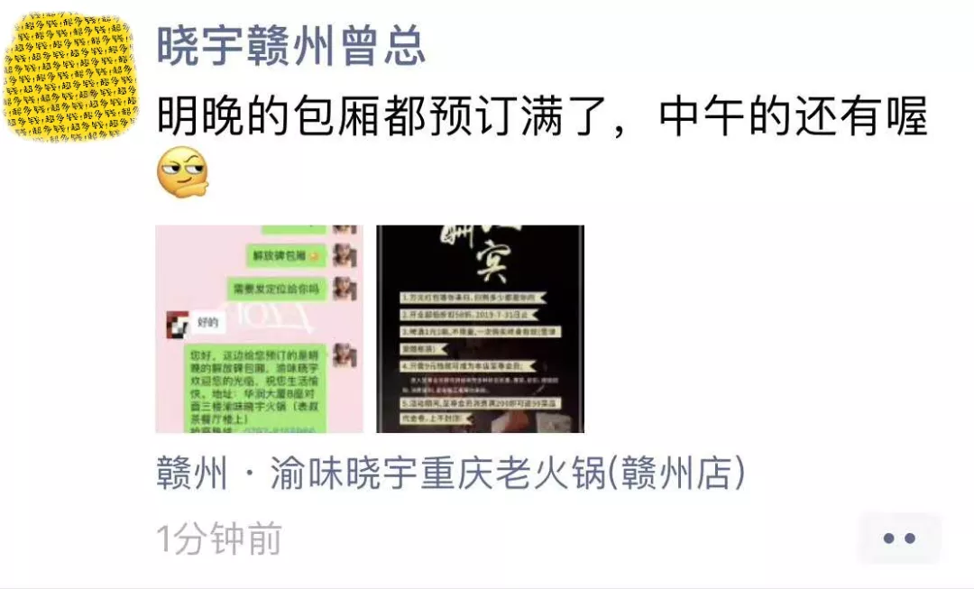 【活動期間商家朋友圈--顧客爆滿,包廂預訂火爆】
