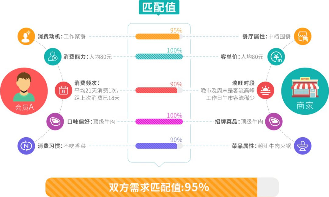 排隊網粉絲運營平臺依據消費水平、就餐偏好、口味、頻次、地理位置等數據標簽對粉絲進行精準畫像,為其提供個性化服務,幫助餐廳從“被動服務”中解脫出來,變成“主動服務”,與消費者建立交互關系,讓餐廳用最輕松的方式,為消費者提供最周到的服務。