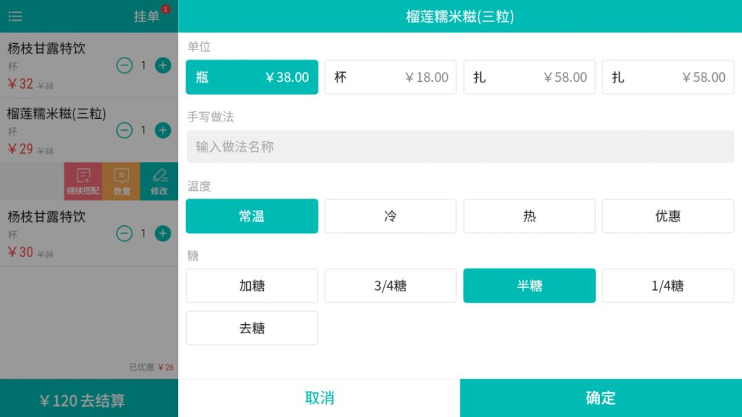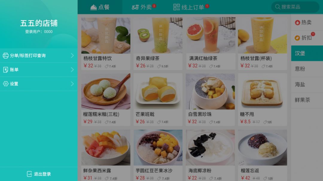 支持菜品折扣、菜品贈送、滿減活動等;集成多種主流支付方式,如現金、票券、會員卡、微信、支付寶等。