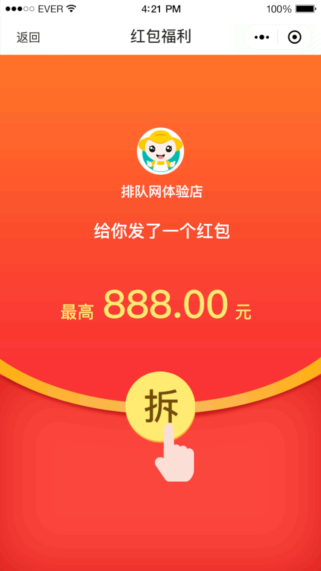 排隊網紅包墻是通過線上發送微信紅包的互動,100%的中獎率,隨機的金額,更能激起顧客的興趣。