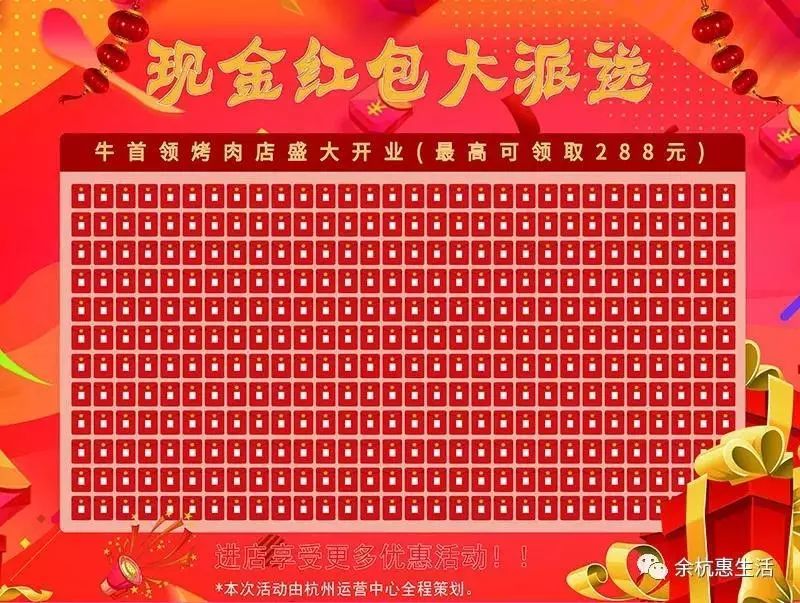 杭州牛首領新店開業,通過紅包墻活動宣傳推廣,提升曝光率,吸引消費人群,打造火爆氛圍。