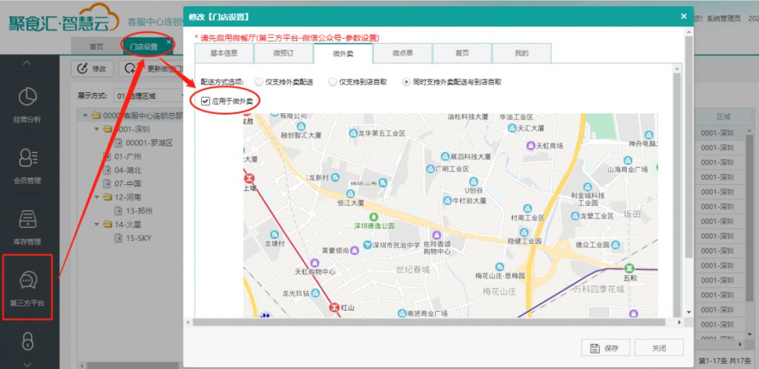第三方平臺→門店設置→勾選“應用于微外賣”,同時可設置配送方式。