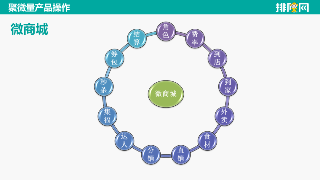 隨后鄧總也根據自身運營的經驗,向大家分享了他的一套微商城運營方法。通過向商家免費送商城+運營的方式,賣收銀系統、硬件設備和支付,加大自己的談判優勢。把商家線上的所有活動搬到微商城來賣,賺取中間的價格差異。