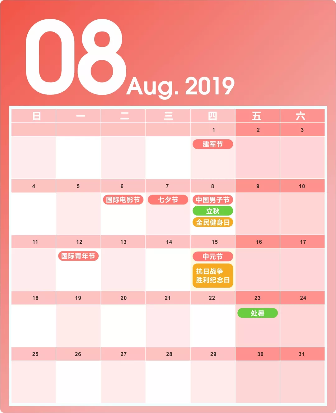 8月營銷日歷貼心奉上,拿走不謝,妥妥的!!!