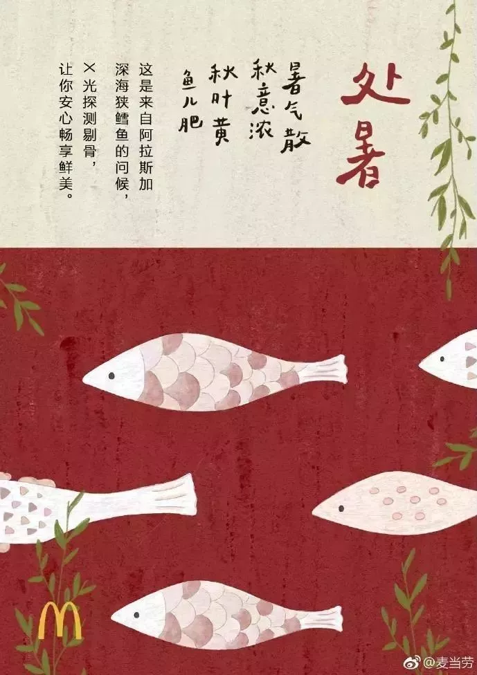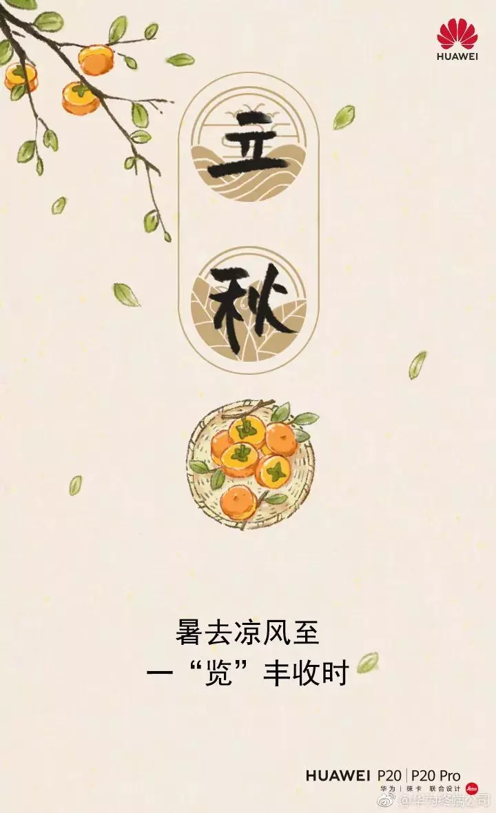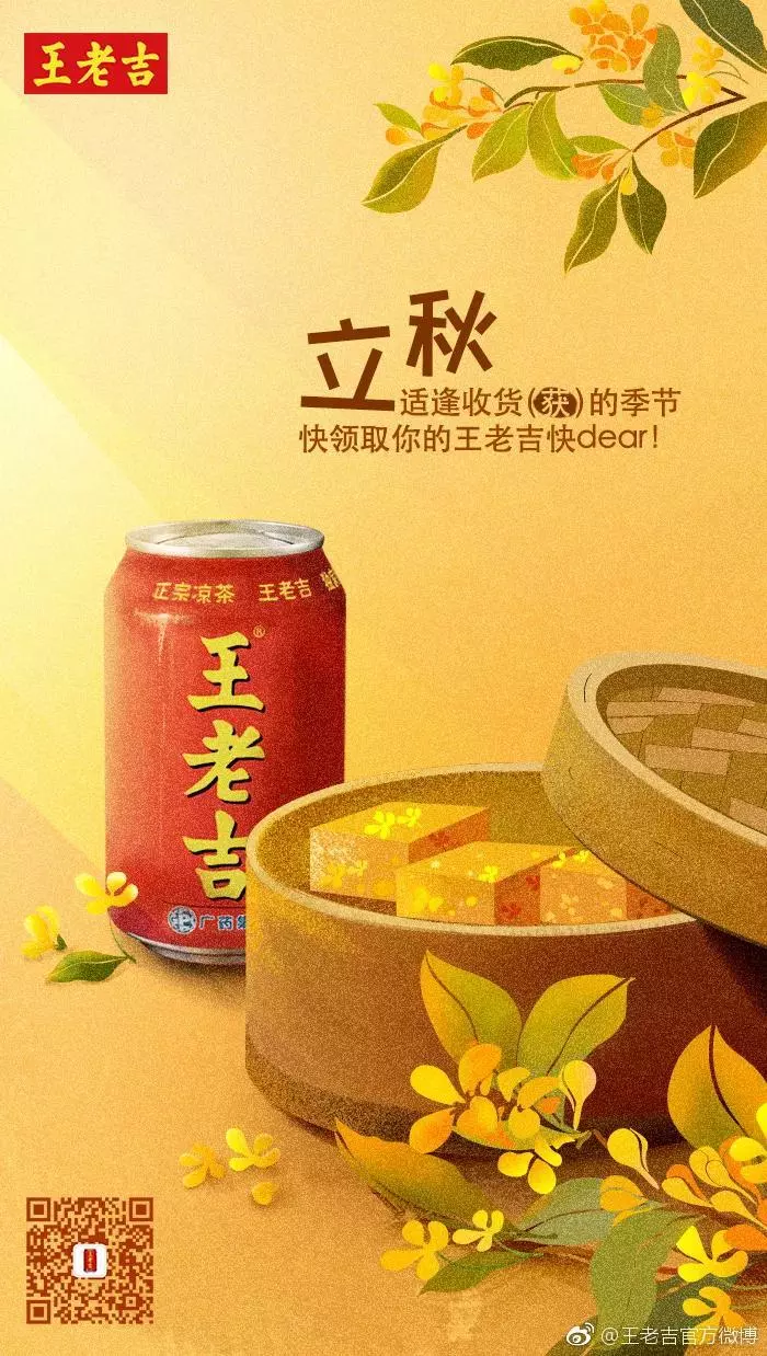 海報,是立秋借勢的常規打法,告別夏季、貼秋膘均可作為角度,秋葉、桂花、柿子可作為立秋的代表元素使用。