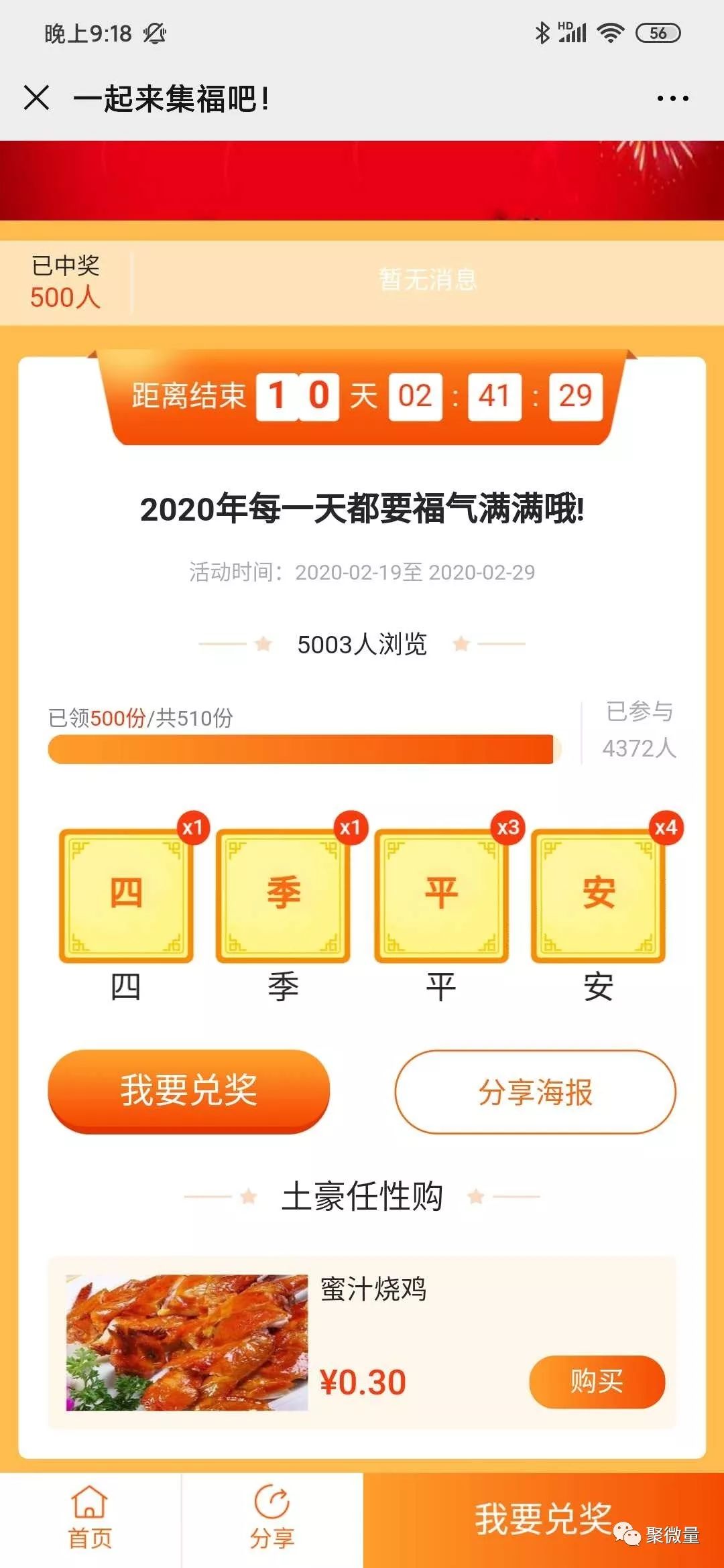 ▲排隊網微商城集福活動