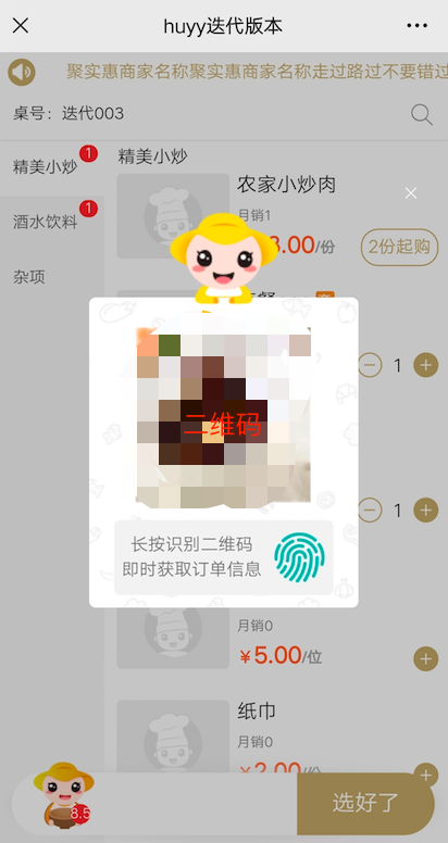 ①聚合H5掃碼點餐增加可不強制關注(在彈出的識別二維碼界面右上方增加了關閉按鈕“?”)