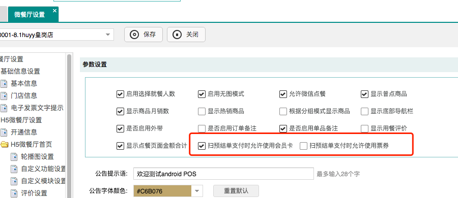①掃預結賬單付款碼時可設置限制不可使用會員卡或票券