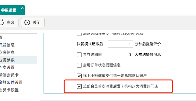 ⑥連鎖總部會員首次到店消費后發卡機構自動更改為對應門店(參數控制)
