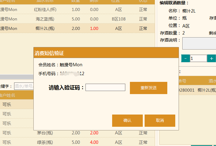 ⑧前臺pos及Mpos增加取酒時短信驗證碼驗證(參數控制)