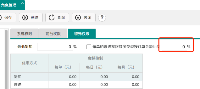 ⑦角色權限-贈送增加按訂單金額比例贈送