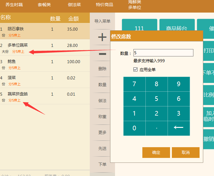 6.酒樓模式點菜,新增“席數”功能