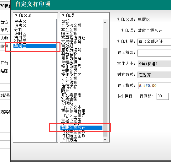 10.結賬小票-單尾區,增加“營收金額合計”打印項