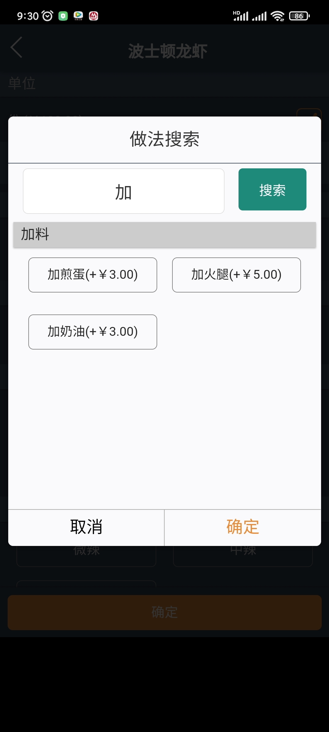 4.點菜界面,數量的“+”/“-”默認使用默認單位(開關控制)
