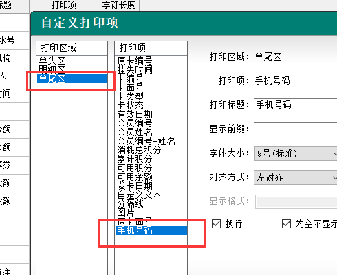 11.充值小票-單尾區,增加“手機號碼”打印項