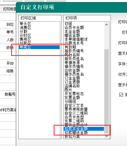 13.預結/結賬小票-單尾區,新增“扣款本金金額”/“扣款贈送金額”打印項