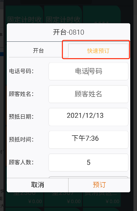 4.酒樓模式新增“開臺快速預訂”功能