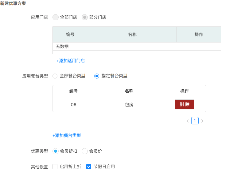 2.【會員優惠方案】增加支持按“餐臺類型”設置