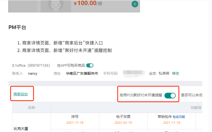 2.新增“啟用POS聚好付未開通提醒”(PM開關控制)