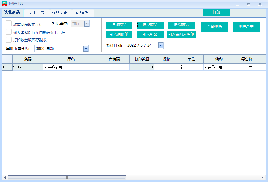 選擇一個商品,比如“阿克蘇蘋果”,新用戶需要先設置好標簽。