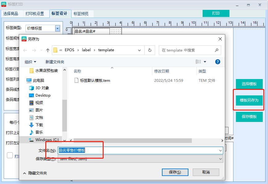 在實際經營中會用到各種各樣的價簽,那這種已經設置好的常用的標簽設置好之后,我們可以將模板保存到電腦上備用哦。
