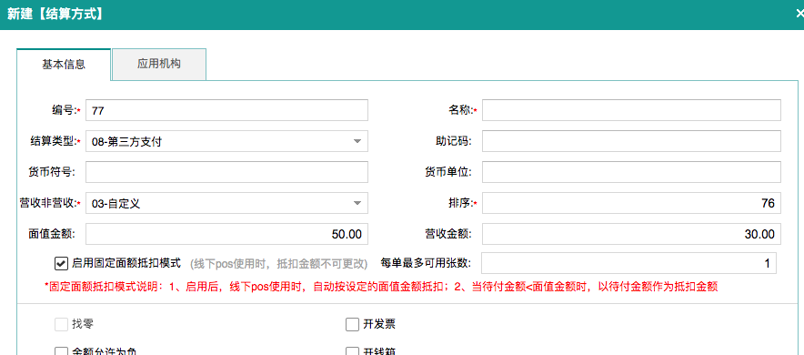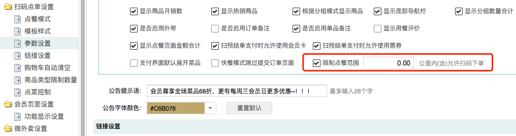 后臺【結算方式】-第三方支付-自定義,增加【啟用固定面額抵扣模式】設置增加前臺敏感及異常操作(退單、反結賬,減免金額、手動打折、余額調整)短信模板設置項微餐廳-參數設置-微信會員卡-入口設置,增加【跳轉小程序】選項基礎資料-商品中,增加【會員價】(新建會員價方案時默認引用)后臺【卡業務明細查詢】,增加前臺充值備注,對應【備注】列庫存【部門領用匯總】-部門維度增加【退倉金額】、【合計金額】增加前臺預結掃預結單二維碼后,不推送【支付提醒】開關控制微餐廳-掃碼點單設置-業務參數,增加【限制點餐范圍】設置項小程序首頁-功能按鈕自定義,增加系統默認圖標(首次使用時生效)后臺【卡業務明細查詢】-05-會員開票明細-導出,適配增加“開票額度”列多品牌-基礎資料-套餐-選擇菜品界面按品牌過濾顯示菜品