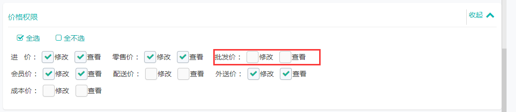 沒有批發價權限的的員工,在批發訂單、銷售單、批發退貨單及相關報表中,無法查看批發價及金額
