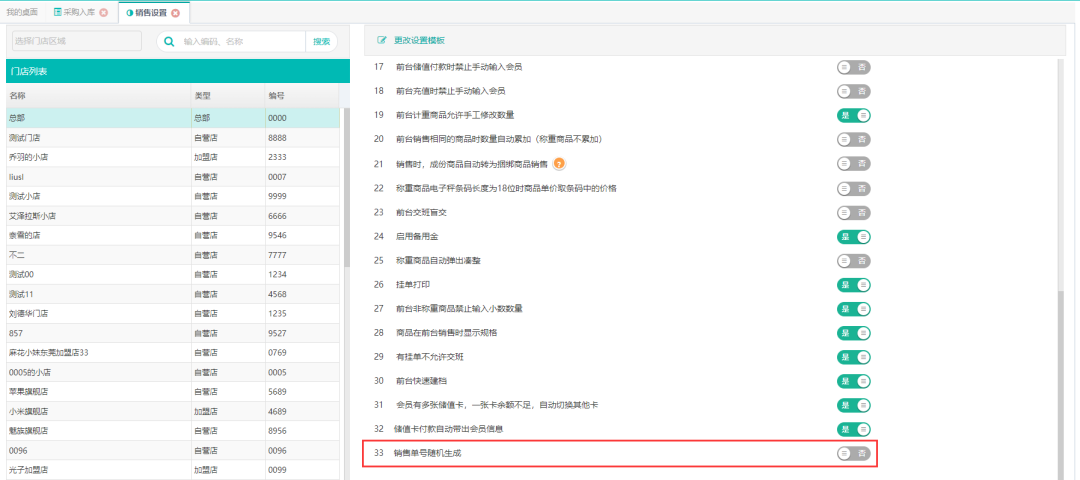 后臺銷售設置中增加參數,開啟后,前臺打印小票銷售單號可以隨機生成