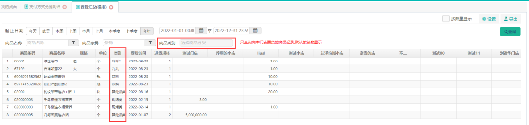 要貨匯總(橫排)報表,增加商品分類篩選條件
