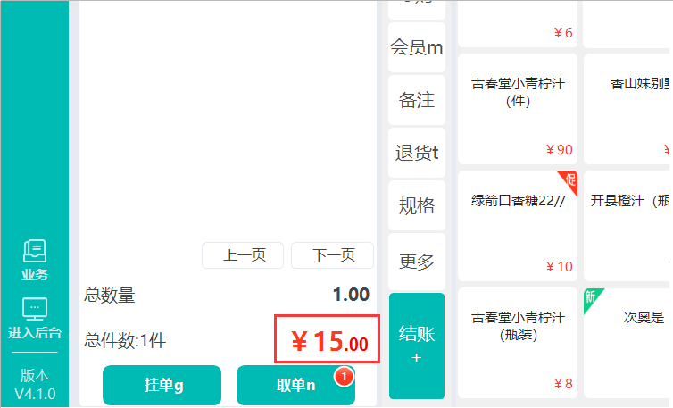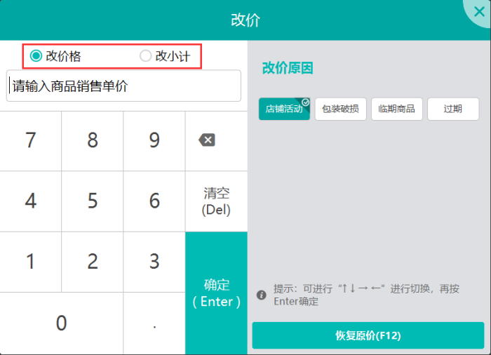 前臺POS商品改價,通過tab鍵切換改價或者改小計
