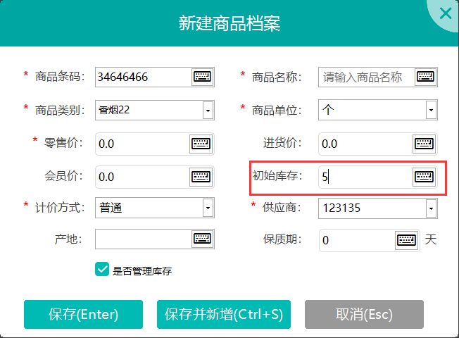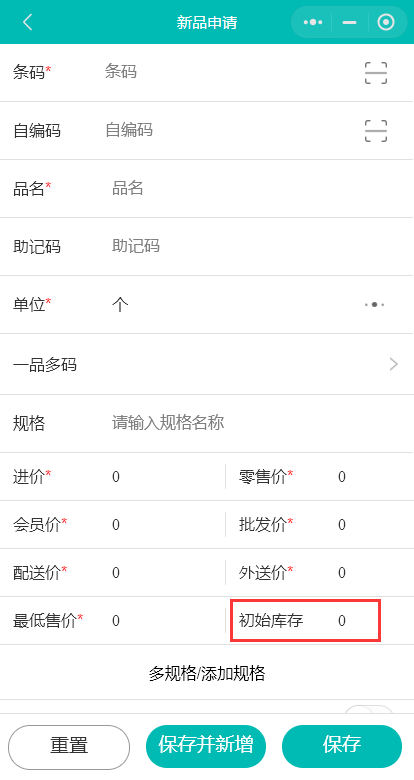 分店前臺POS進行快速建檔,填寫初始庫存數量則入庫到分店倉庫下