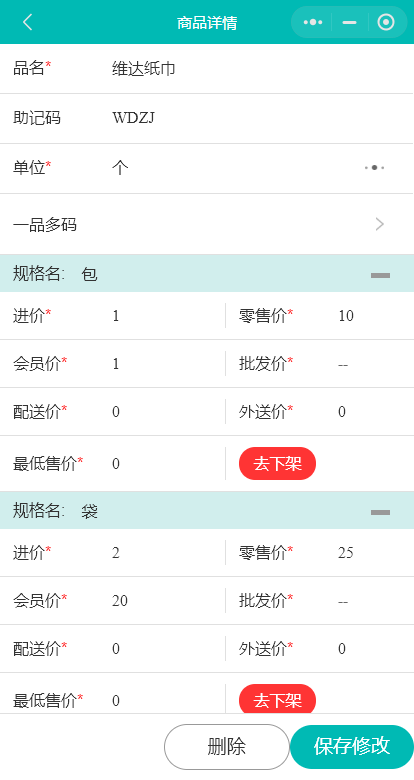 薈掌柜新建或者編輯商品,可以添加一品多碼