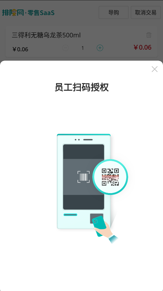 適用場景:顧客支付成功后,機器沒有顯示完成結賬界面。可以聯系店員掃核銷碼進行支付核銷,來完成本單的結賬
