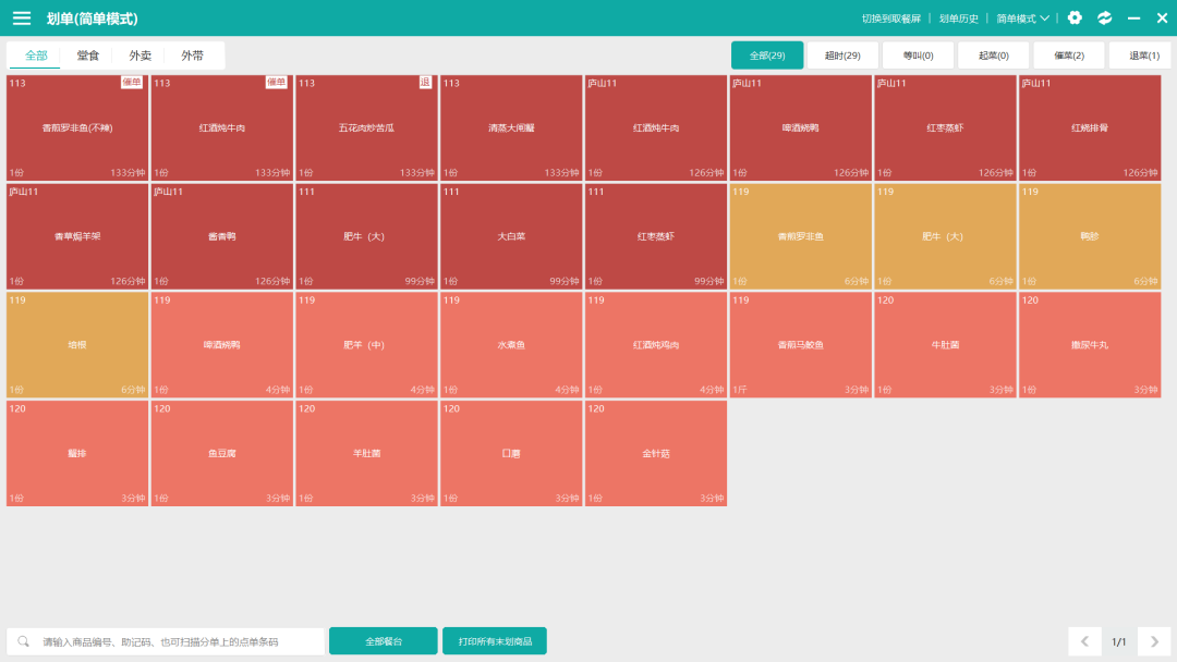 時間顯示、Wifi、外賣管理、打印機移至右頂欄